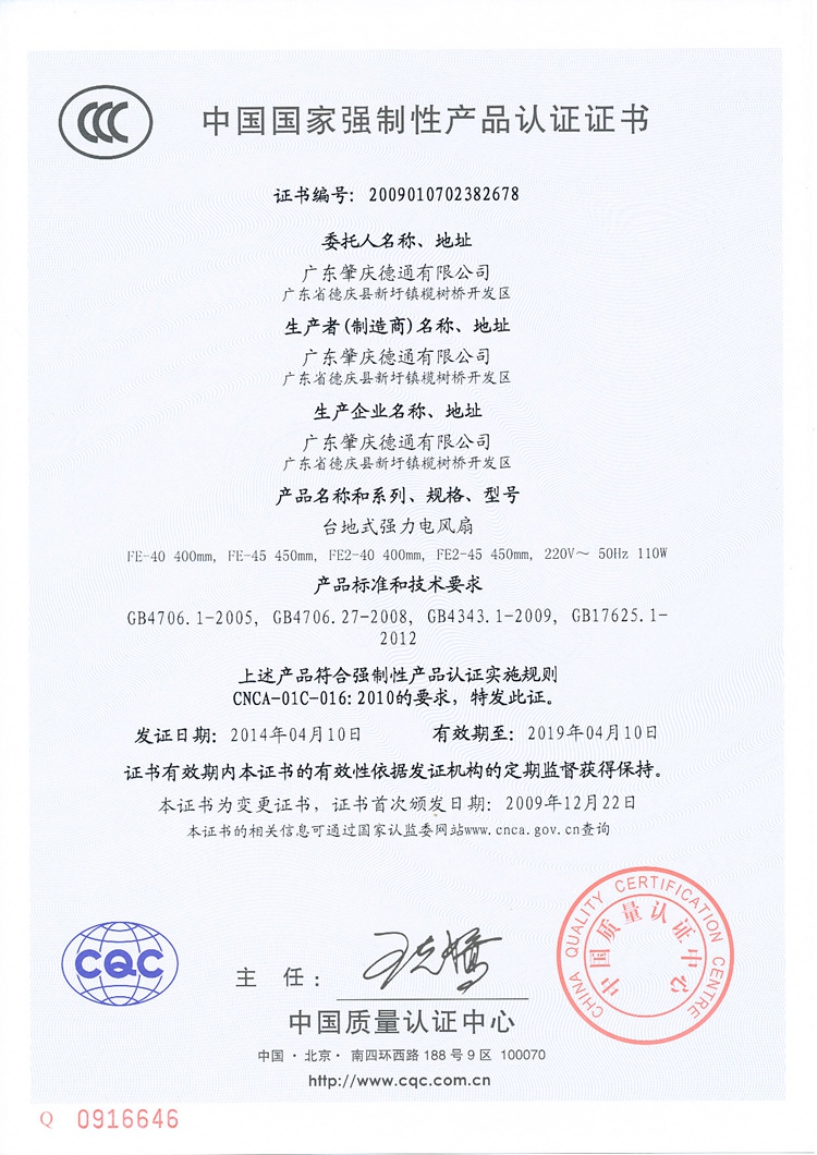 台地式强力电风扇FE-40/3C认证