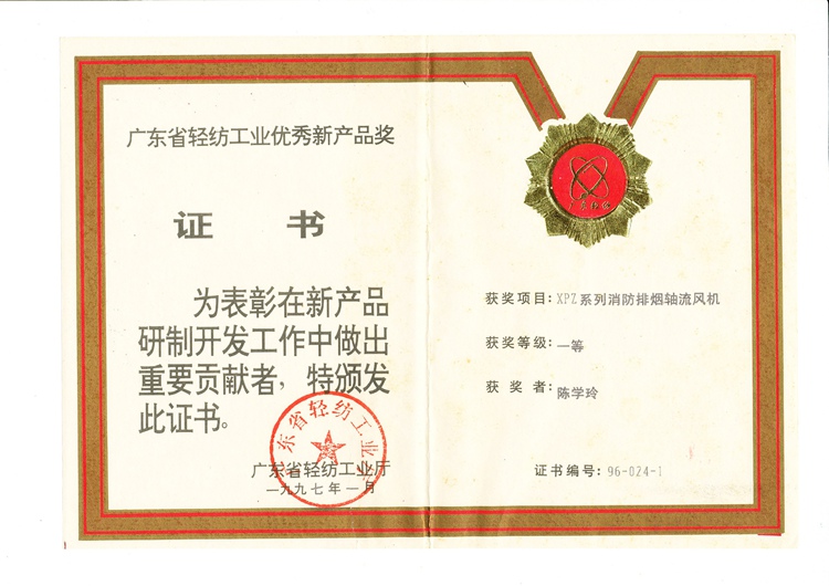 XPZ系列消防排烟轴流风机.广东轻纺工业优秀新产品一等奖